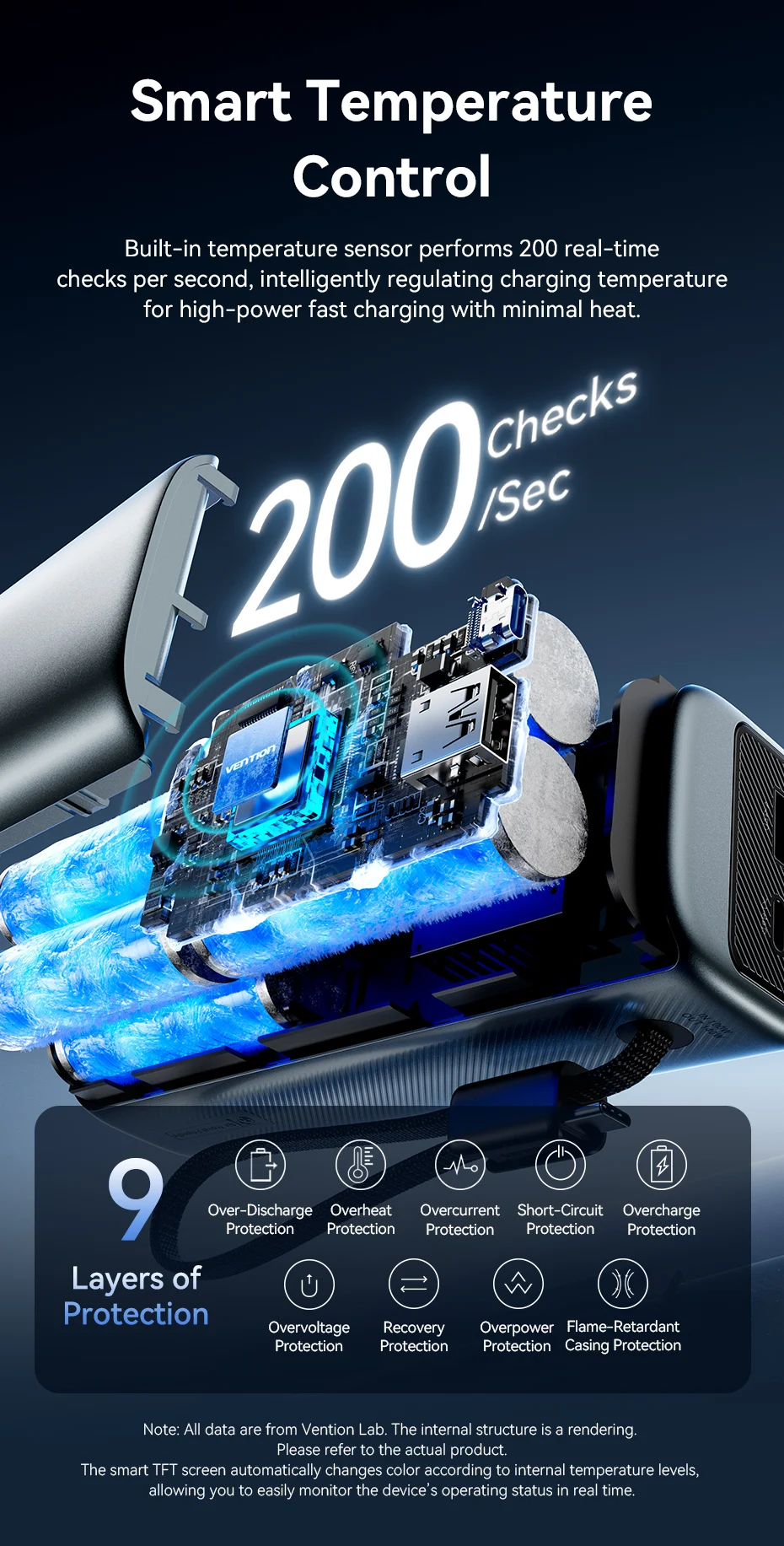 Built-in temperature sensor performs 200 real-time checks per second, intelligently regulating charging temperature for high-power fast charging with minimal heat.