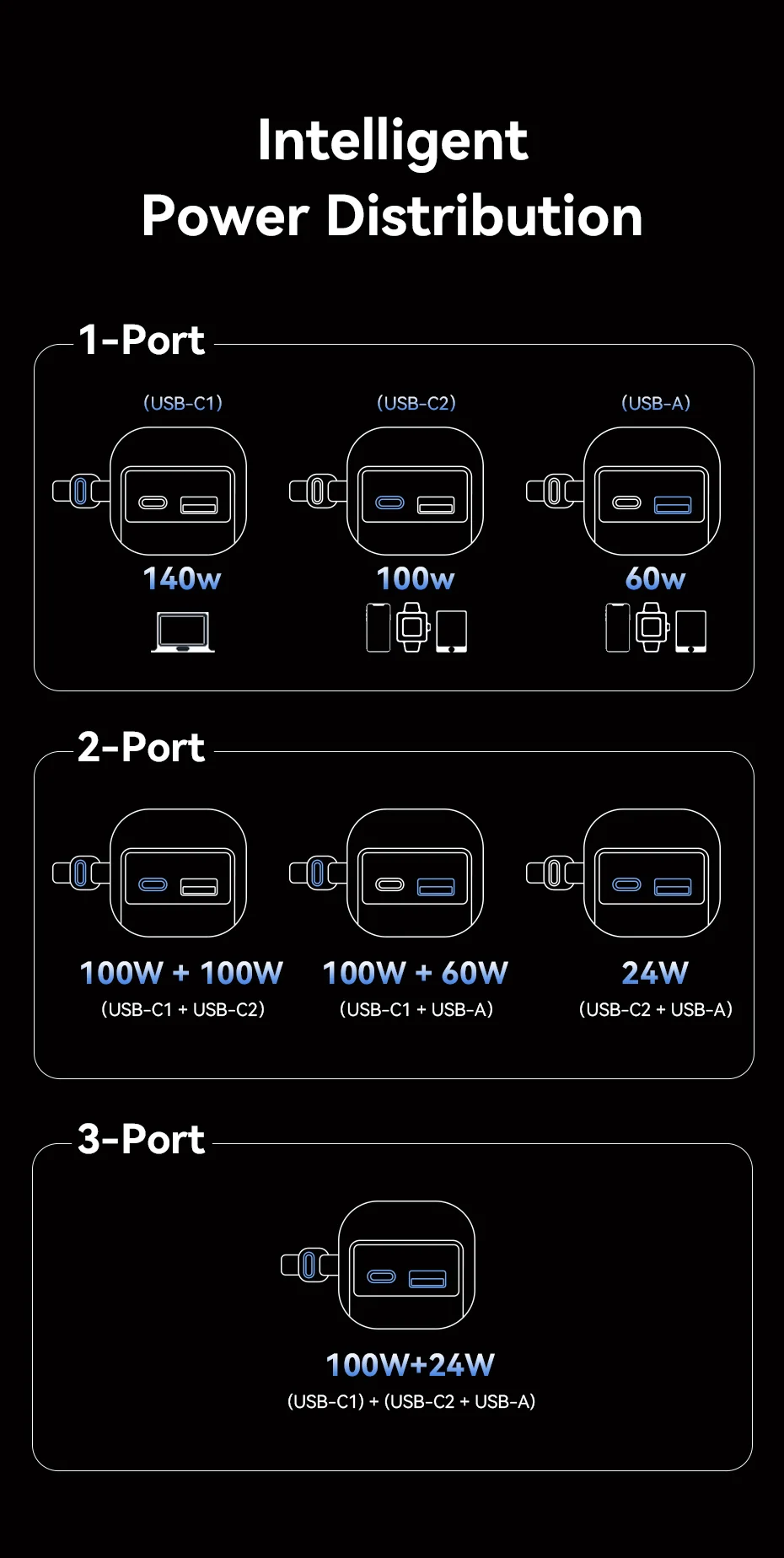 USB-C1 single-port output supports up to 140W Max,